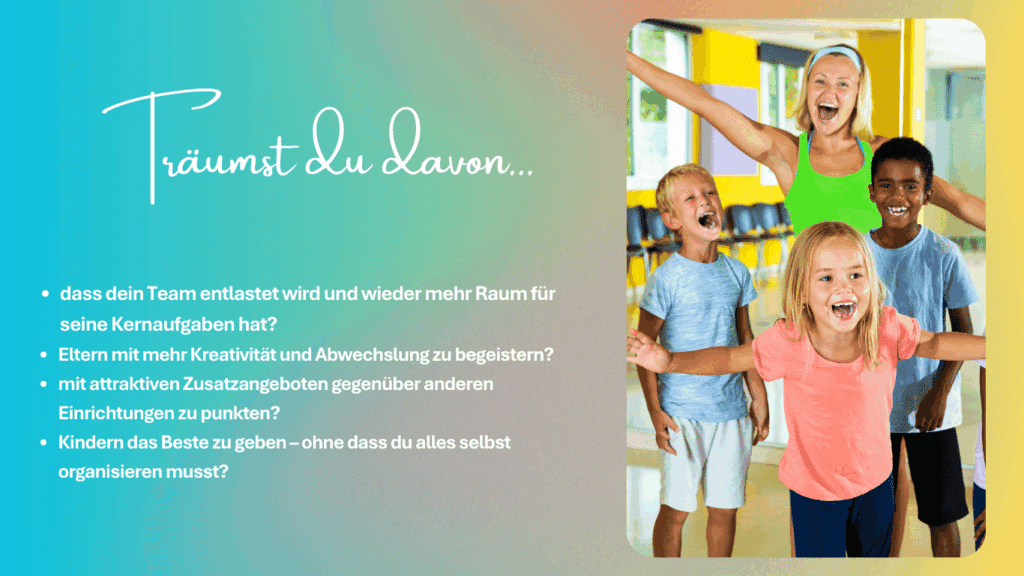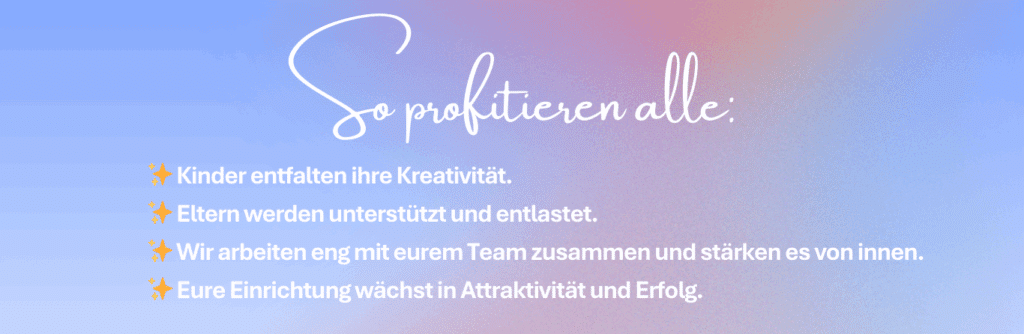 Kinder kreativ wachsen zu sehen, ist meine Leidenschaft. Ich begleite sie auf ihrem Weg, unterstütze sie in ihrer Entwicklung und öffne Räume für Fantasie und eigene Ideen.