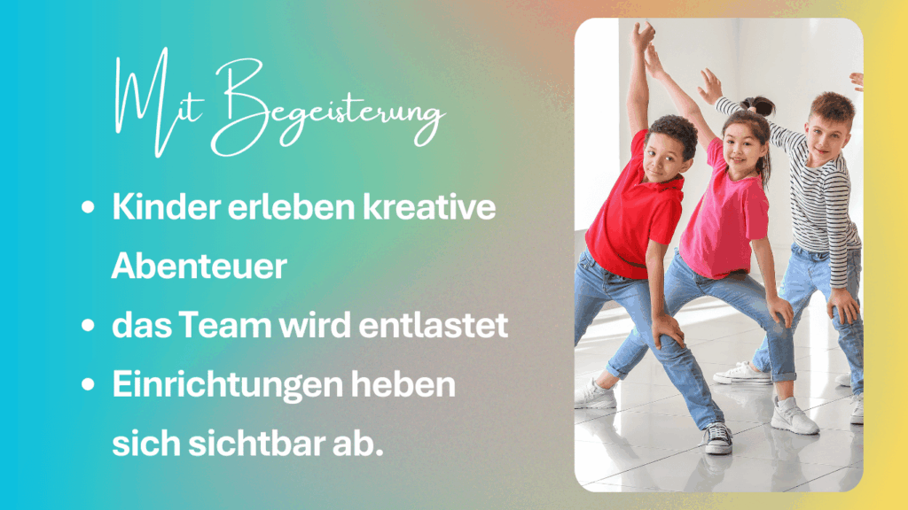 Mit viel Feingefühl, Kreativität und Begeisterung vermittelt sie musikalische und kreative Grundlagen altersgerecht, spielerisch und motivierend. Sie versteht es, Freude an Musik und Ausdruck zu wecken, das Selbstvertrauen der Kinder zu stärken und jedes Kind individuell in seiner Persönlichkeit zu fördern.